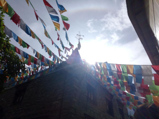 晚飯后回房間休憩修整,8點(diǎn)30晚上的活動(dòng)便開始了——烤全羊和跳鍋莊!跟著熱情的“瑟浪”和“以沫”一陣的群魔亂舞,盡管大家的舞姿都迷之奇特,但是在當(dāng)下的氣氛下依然覺得很美好,每個(gè)人臉上洋溢的都是滿滿的開心。一陣活絡(luò)后大家圍坐下來開始準(zhǔn)備吃!烤!全!羊!!過程中不斷有游客上去唱著自己拿手的歌曲為大家助興,其中包括我們的歌神謙謙,一開口就驚艷四座,歡呼聲鼓掌聲不斷。熱熱鬧鬧的篝火晚會(huì)以及一天的行程在導(dǎo)游的歌聲中結(jié)束。