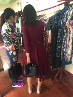 巷子里的一家旗袍店,吸引我們女同事的目光,女孩子的心中大多有個旗袍夢,喜歡旗袍的女生大多是婉約中透著詩意,帶著淺淺心事,就像戴望舒《雨巷》里那位“丁香一樣的姑娘”,現(xiàn)在就差一把油紙傘了。