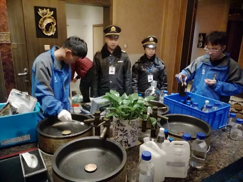 他們在瑟瑟寒風(fēng)中采集著河流水樣。