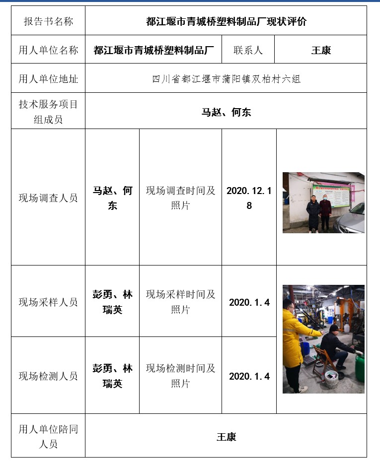 都江堰市青城橋塑料制品廠現(xiàn)狀評價