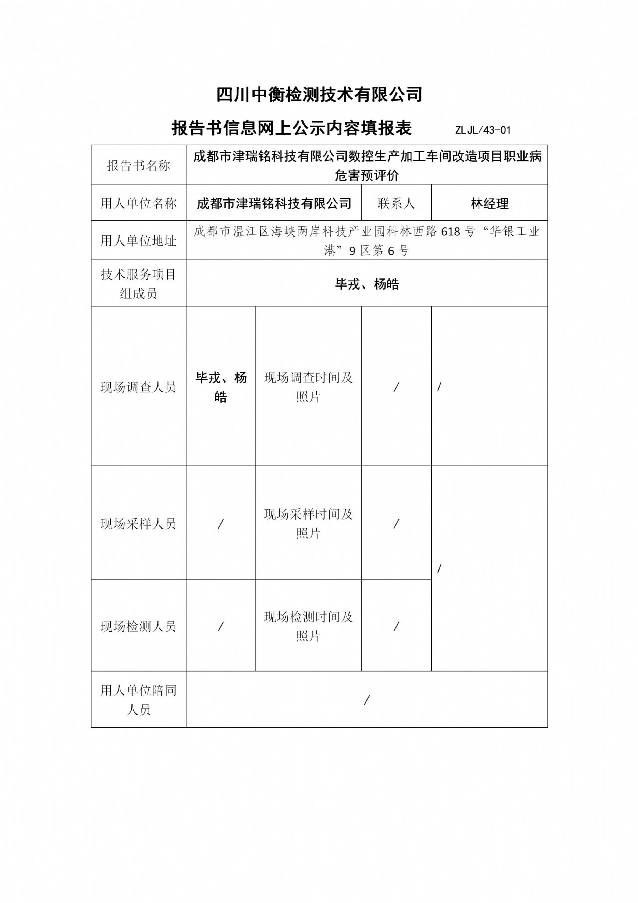 成都市津瑞銘科技有限公司數(shù)控生產(chǎn)加工車間改造項目預(yù)評