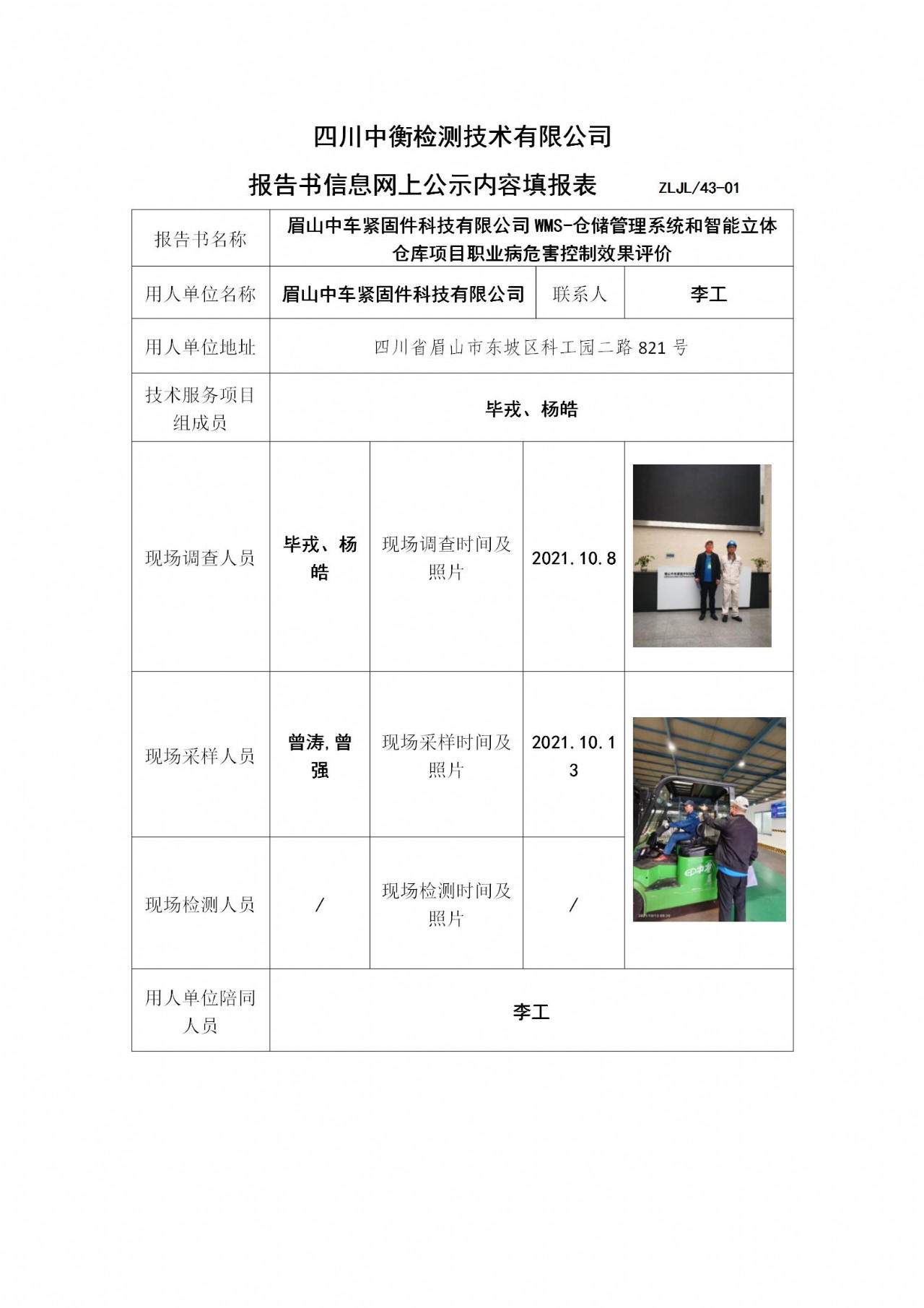 眉山中車緊固件科技有限公司W(wǎng)MS-倉儲管理系統(tǒng)和智能立體倉庫項目職業(yè)病危害控制效果評價