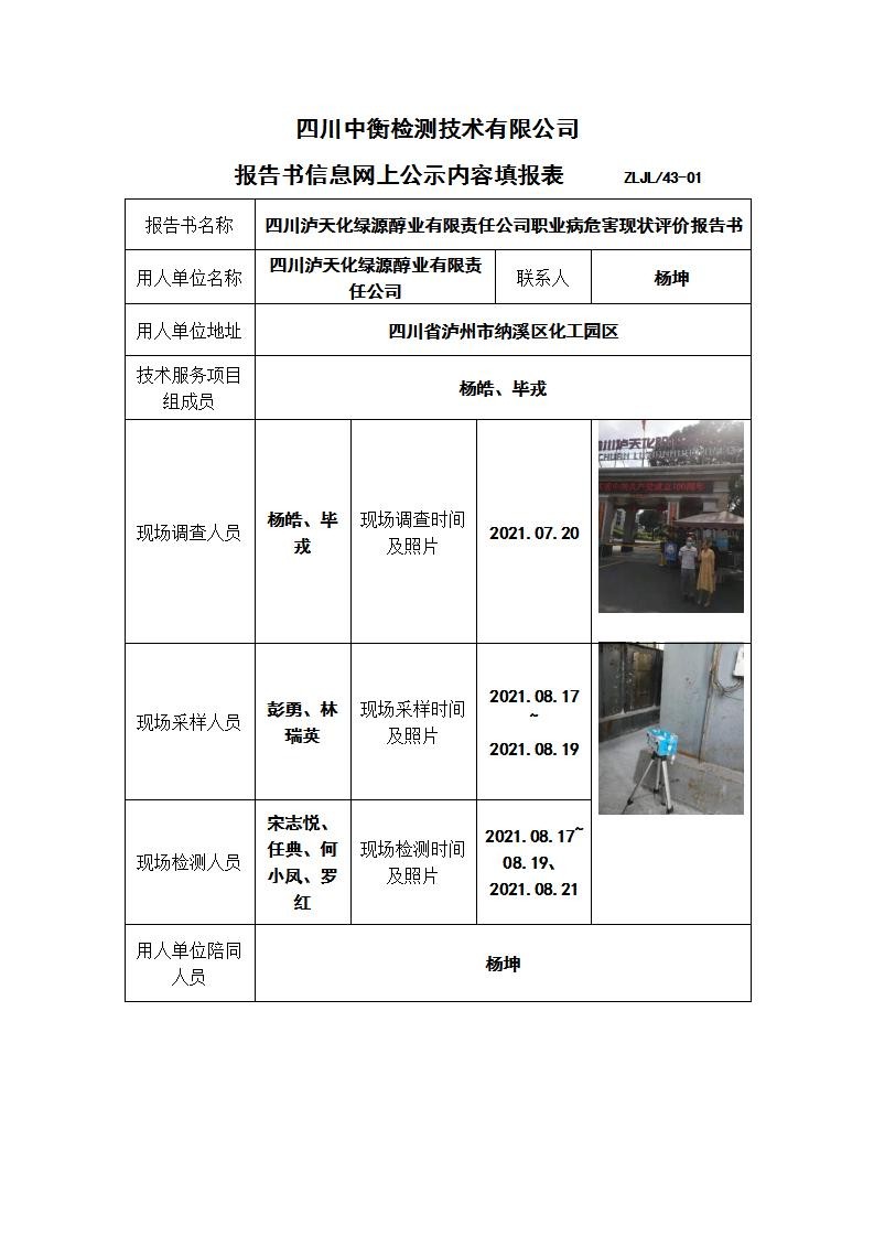 四川瀘天化綠源醇業(yè)有限責任公司職業(yè)病危害現狀評價