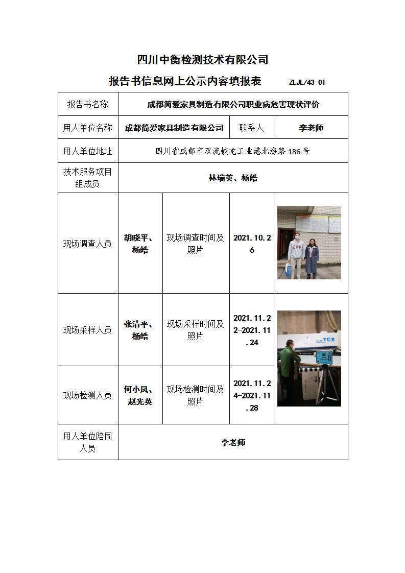 成都簡(jiǎn)愛(ài)家具制造有限公司職業(yè)病危害現(xiàn)狀評(píng)價(jià)