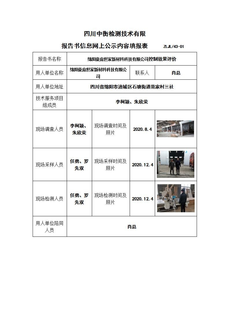 綿陽(yáng)豪庭世家新材料科技有限公司控制效果評(píng)價(jià)