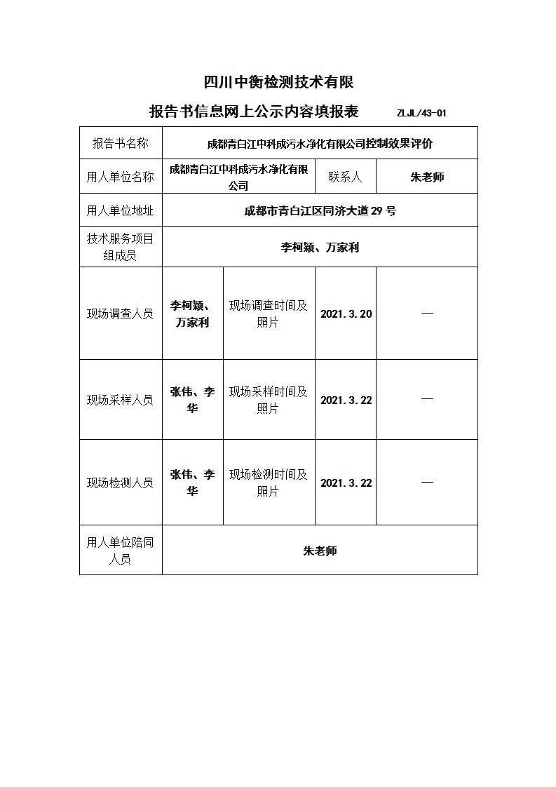 成都青白江中科成污水凈化有限公司控制效果評價