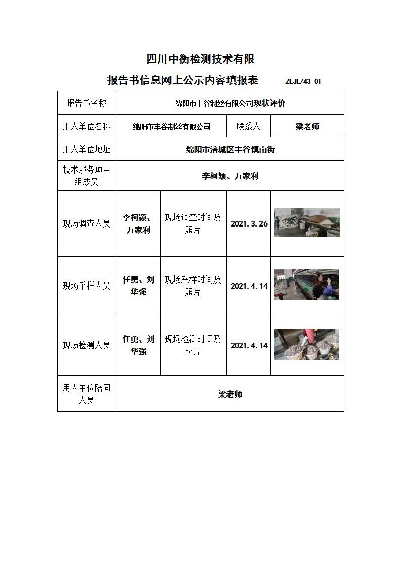 綿陽市豐谷制絲有限公司現(xiàn)狀評價