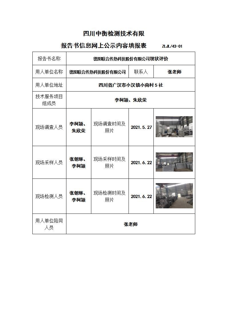 德陽聯(lián)合傳熱科技股份有限公司現(xiàn)狀評價