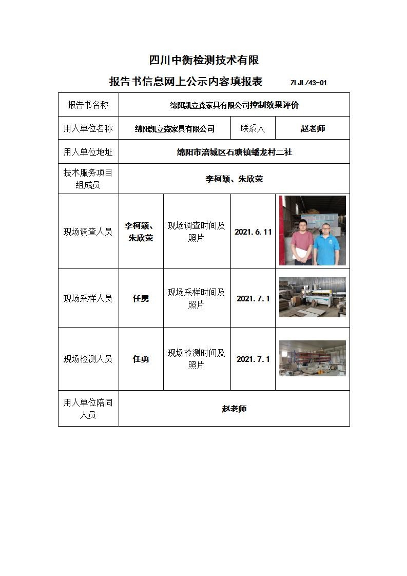 綿陽(yáng)凱立森家具有限公司控制效果評(píng)價(jià)