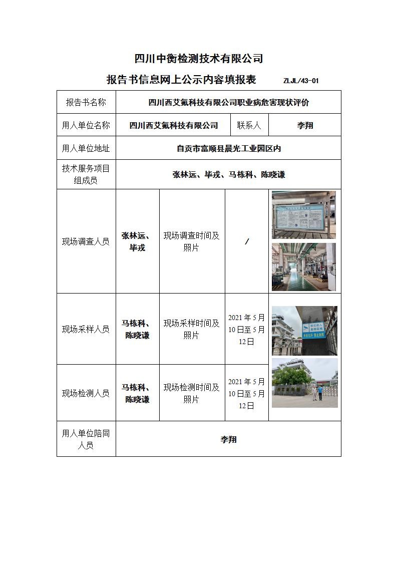 四川西艾氟科技有限公司職業(yè)病危害現(xiàn)狀評(píng)價(jià)