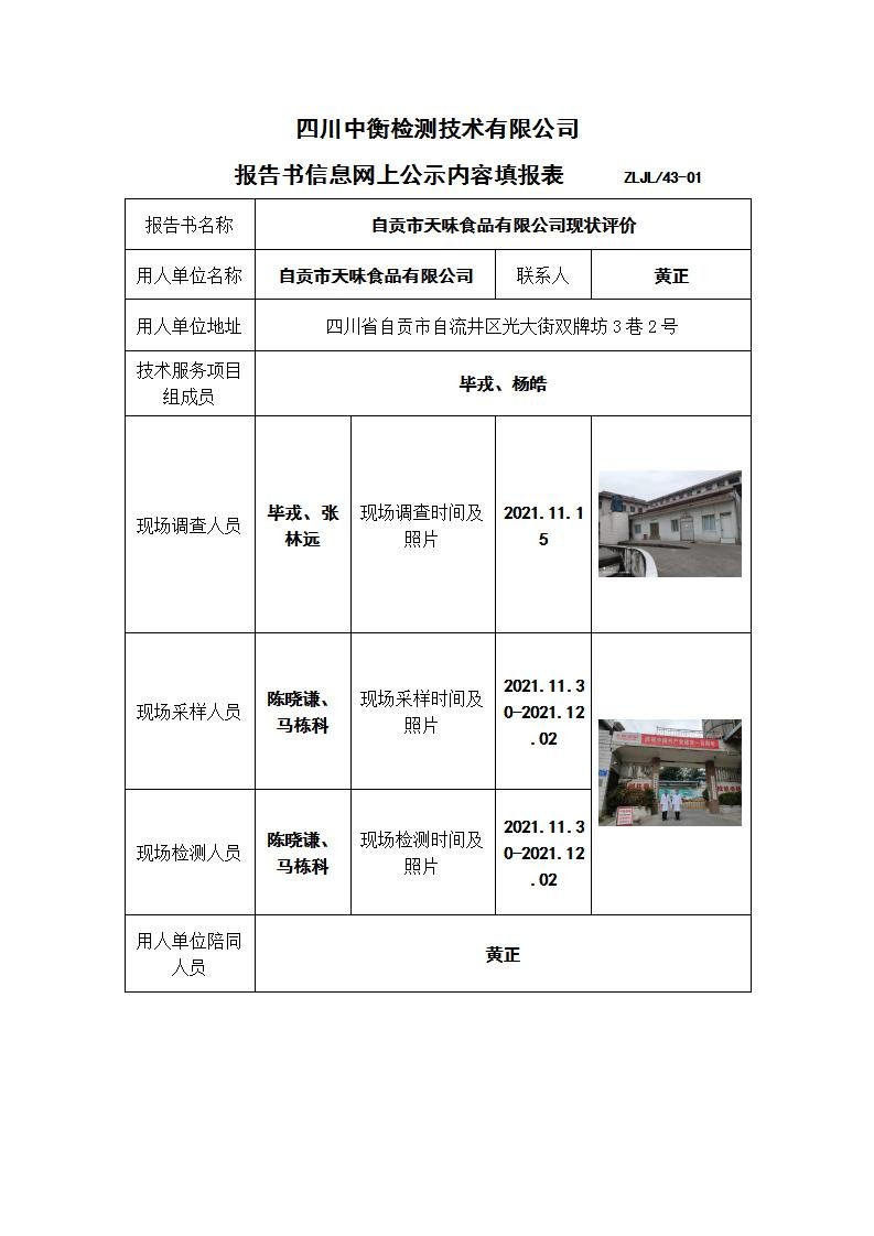 自貢市天味食品有限公司現(xiàn)狀評價(jià)