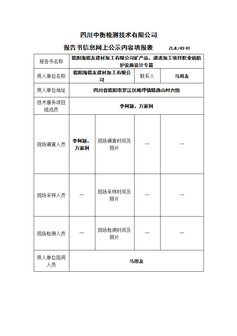 德陽海德友建材加工有限公司礦產(chǎn)品、道渣加工項目職業(yè)病防護(hù)設(shè)施設(shè)計專篇