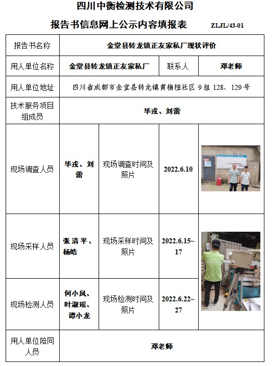 金堂縣轉(zhuǎn)龍鎮(zhèn)正友家私廠現(xiàn)狀評價