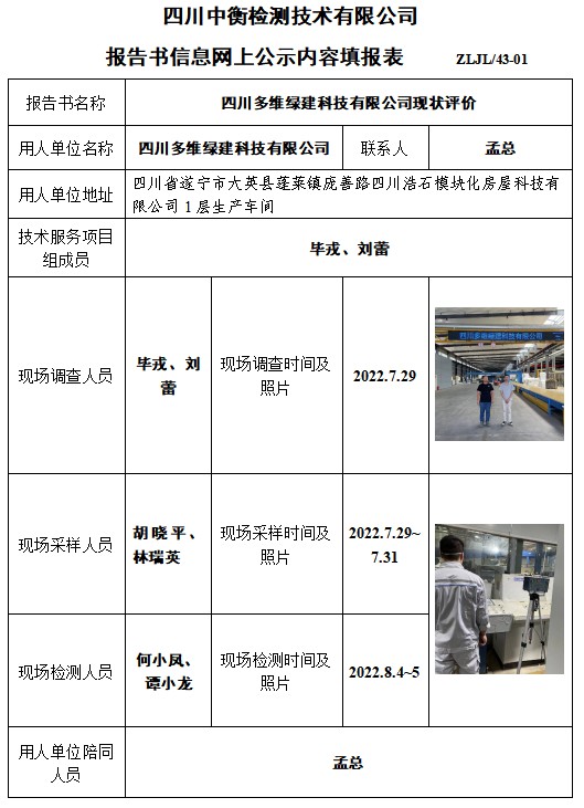 四川多維綠建科技有限公司控制效果評價