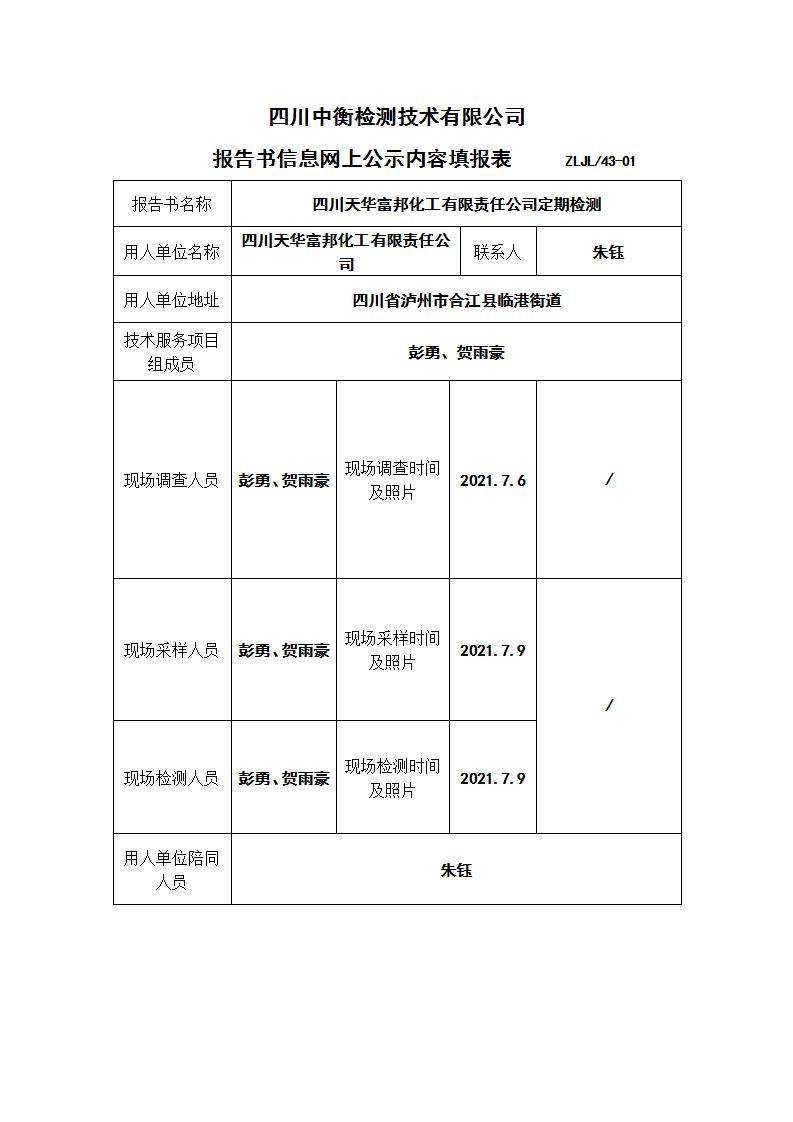 四川天華富邦化工有限責任公司職業(yè)病危害定期檢測