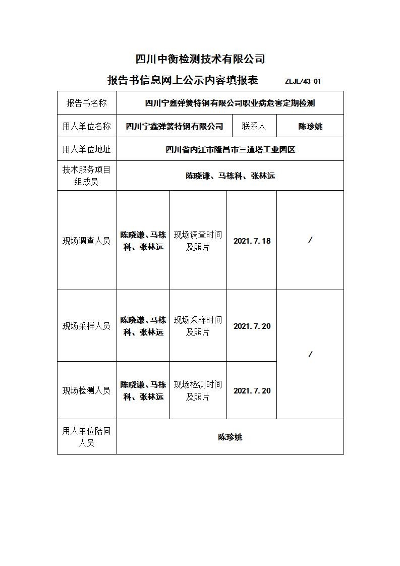 四川寧鑫彈簧特鋼有限公司職業(yè)病危害定期檢測