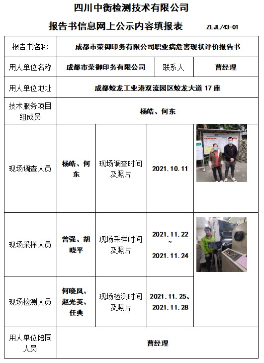 成都市榮御印務(wù)有限公司職業(yè)病危害現(xiàn)狀評價