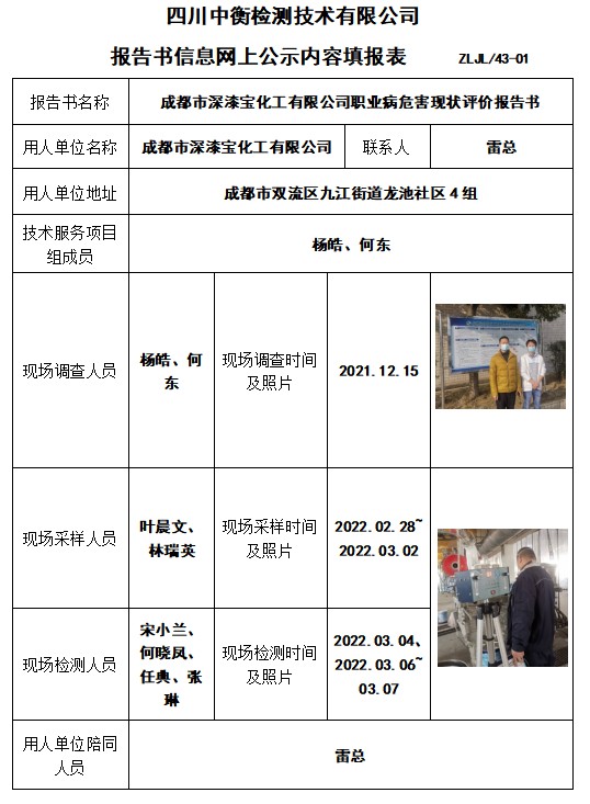 成都市深漆寶化工有限公司職業(yè)病危害現(xiàn)狀評價(jià)