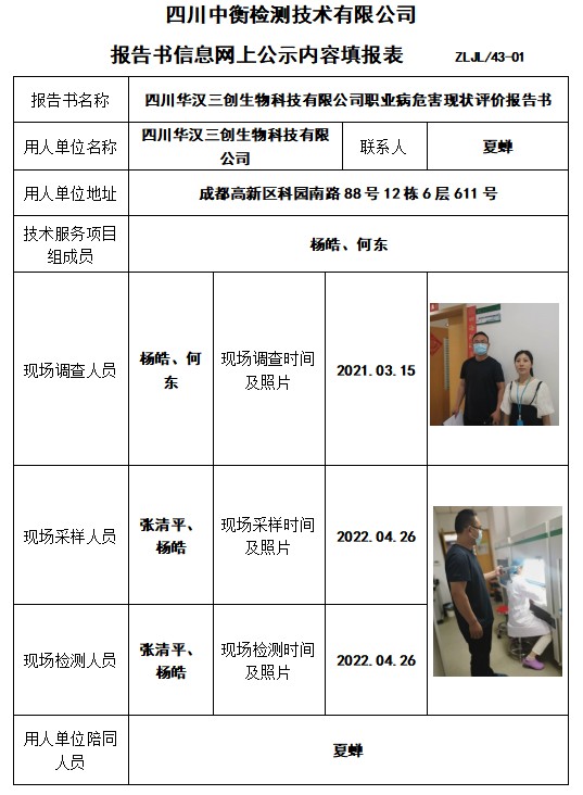 四川華漢三創(chuàng)生物科技有限公司職業(yè)病危害現(xiàn)狀評價(jià)
