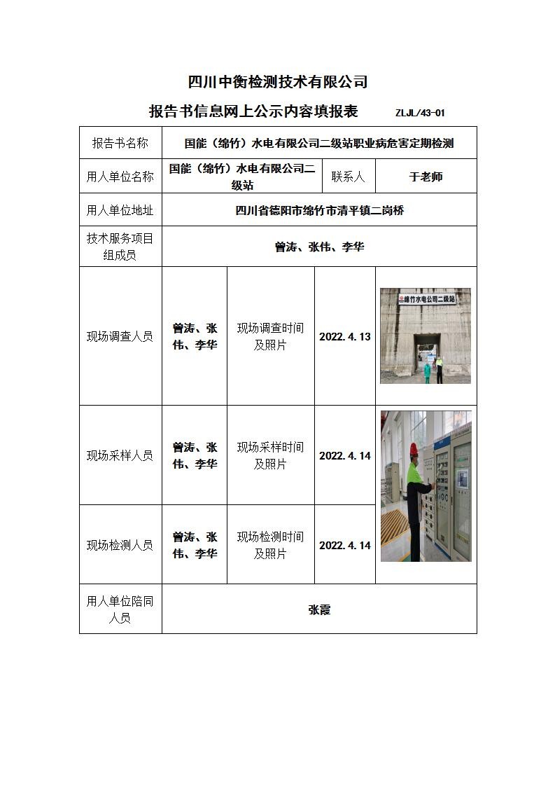 國能(綿竹)水電有限公司二級站職業(yè)病危害定期檢測
