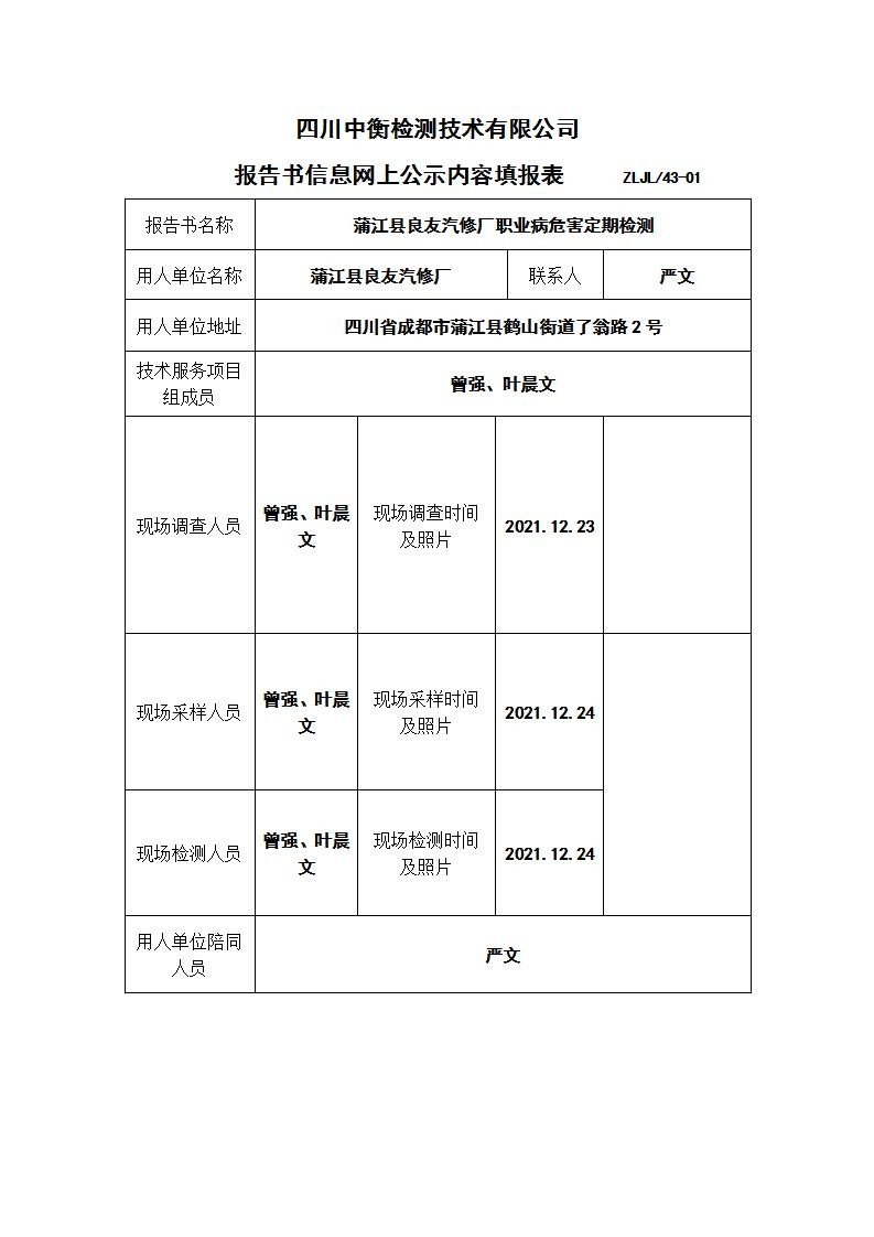 蒲江縣良友汽修廠職業(yè)病危害定期檢測(cè)