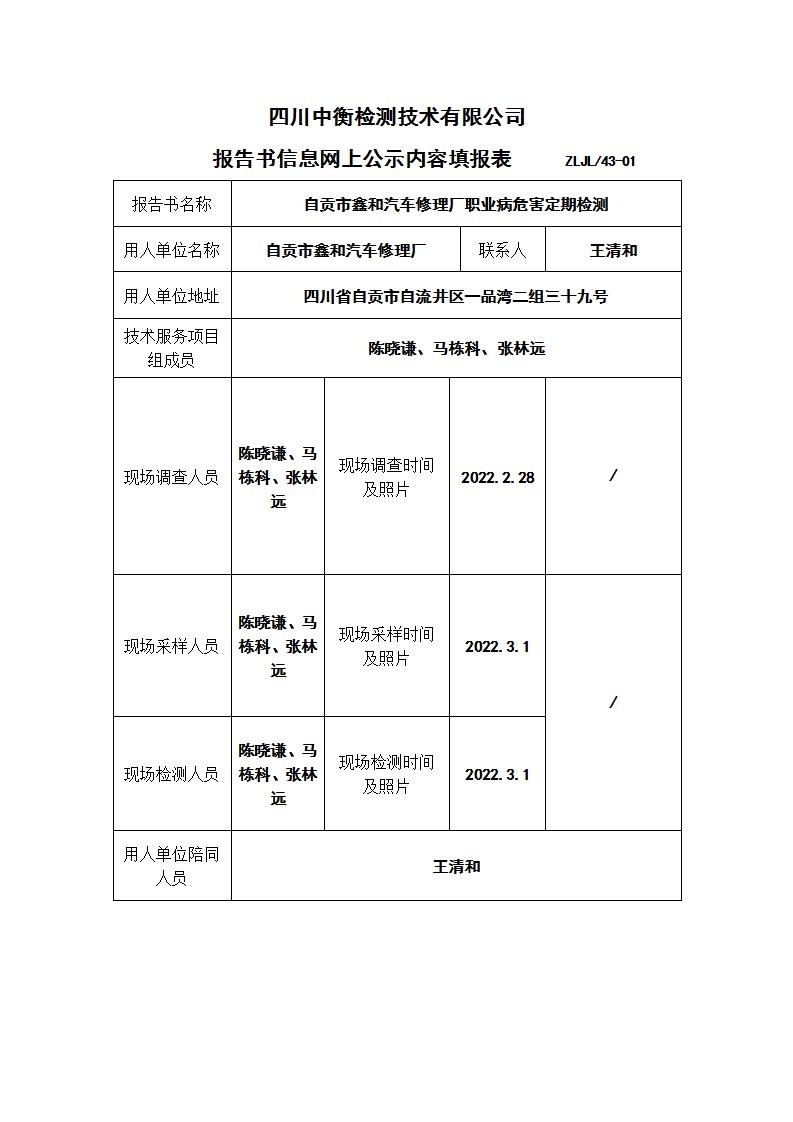 自貢市鑫和汽車修理廠職業(yè)病危害定期檢測
