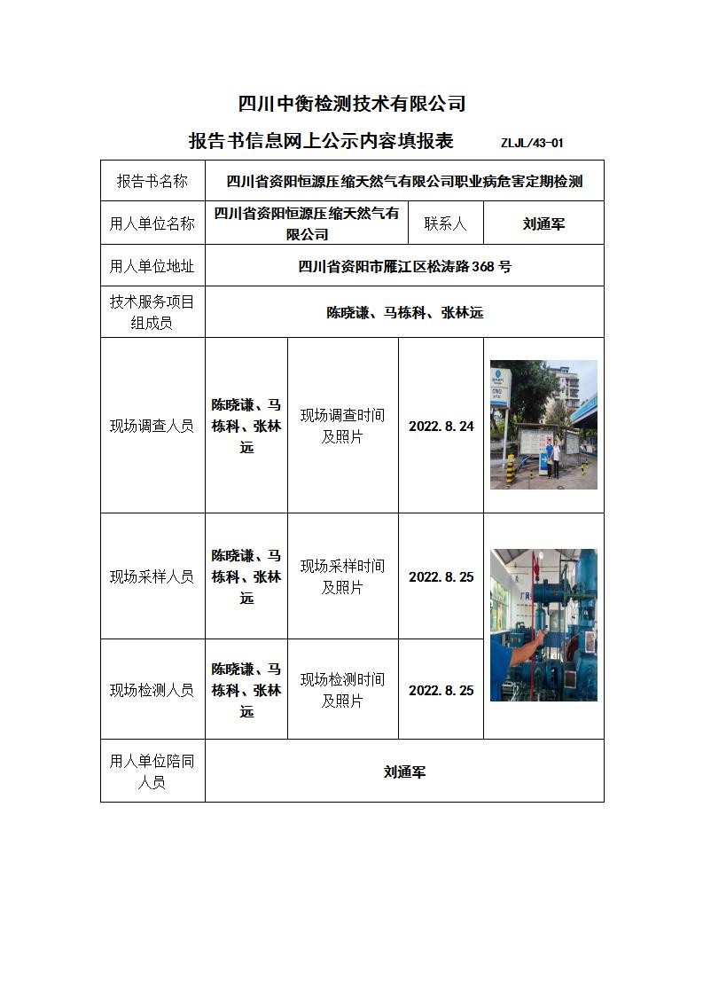 四川省資陽恒源壓縮天然氣有限公司職業(yè)病危害定期檢測(cè)