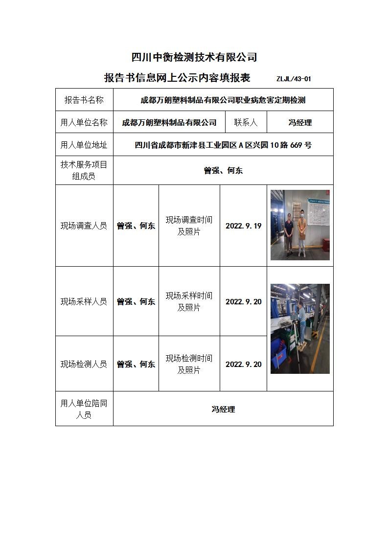 成都萬朗塑料制品有限公司職業(yè)病危害定期檢測