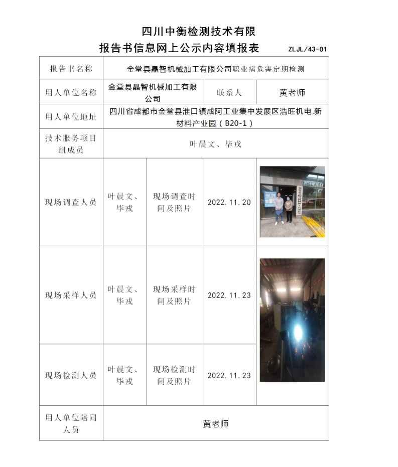 金堂縣晶智機(jī)械加工有限公司職業(yè)病危害定期檢測(cè)