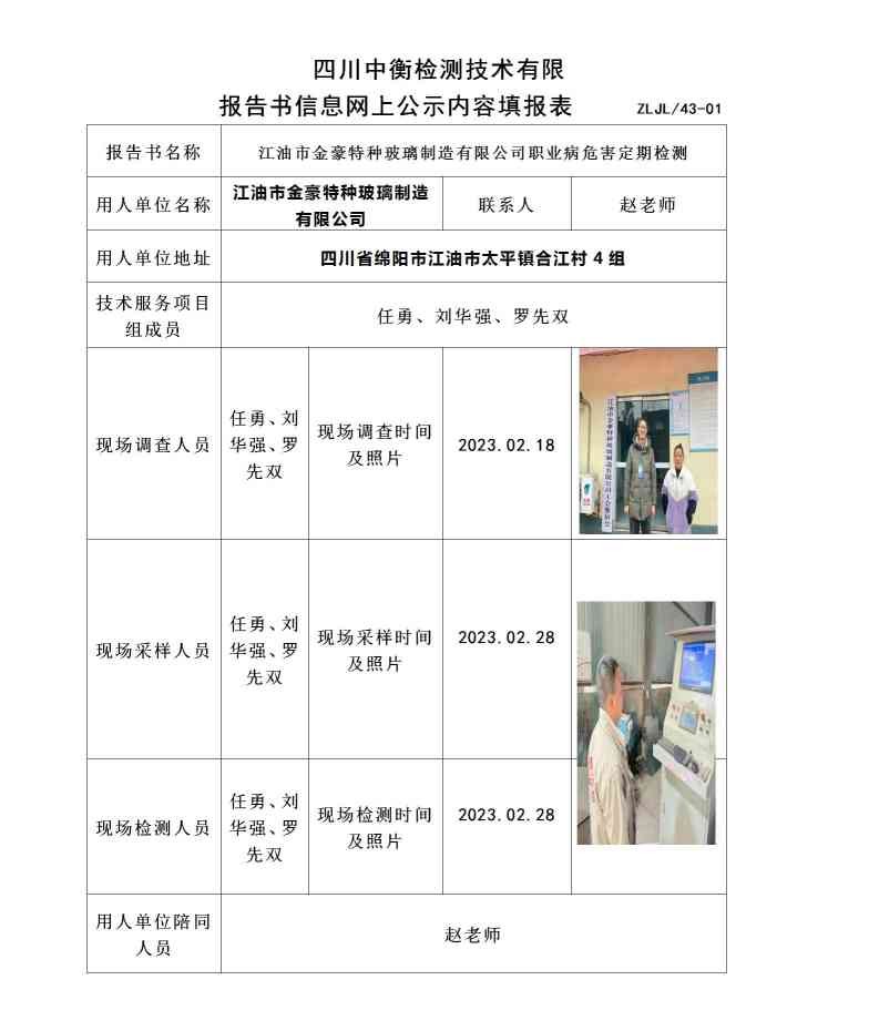 江油市金豪特種玻璃制造有限公司職業(yè)病危害定期檢測