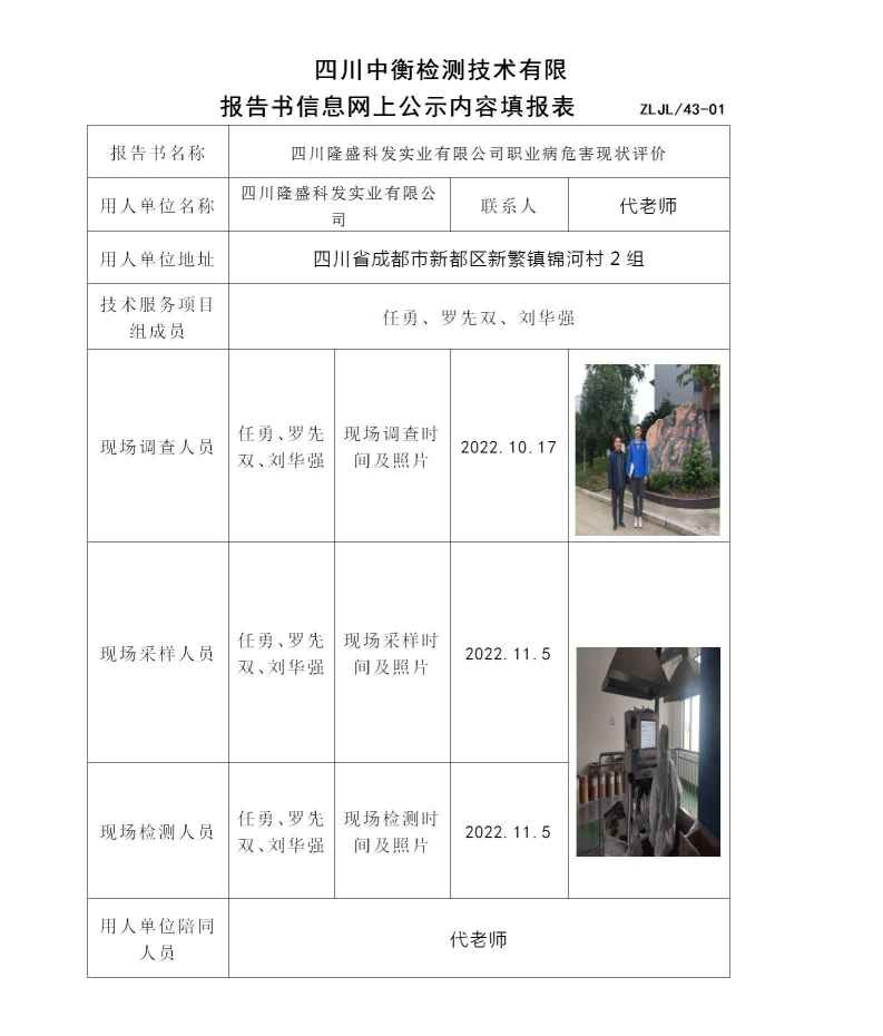 四川隆盛科發(fā)實(shí)業(yè)有限公司職業(yè)病危害現(xiàn)狀評(píng)價(jià)
