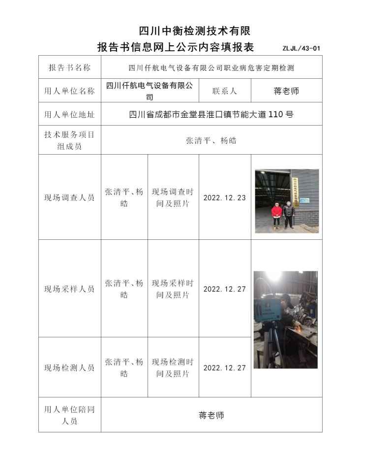 四川仟航電氣設(shè)備有限公司職業(yè)病危害定期檢測
