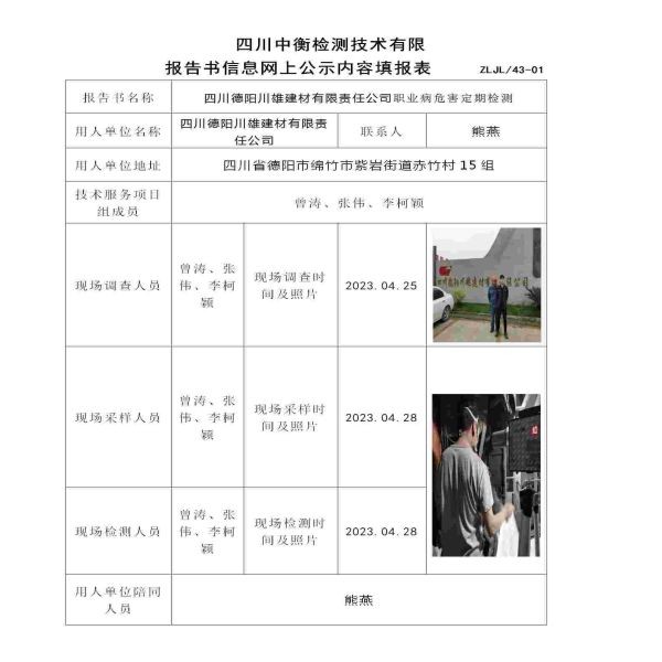 四川德陽川雄建材有限責(zé)任公司職業(yè)病危害定期檢測