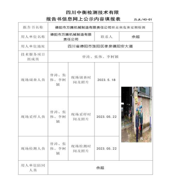 德陽(yáng)市萬(wàn)騰機(jī)械制造有限責(zé)任公司職業(yè)病危害定期檢測(cè)