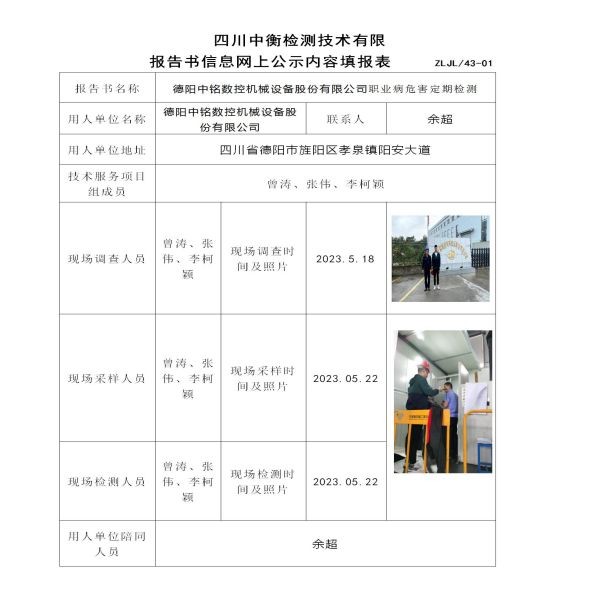 德陽(yáng)中銘數(shù)控機(jī)械設(shè)備股份有限公司職業(yè)病危害定期檢測(cè)