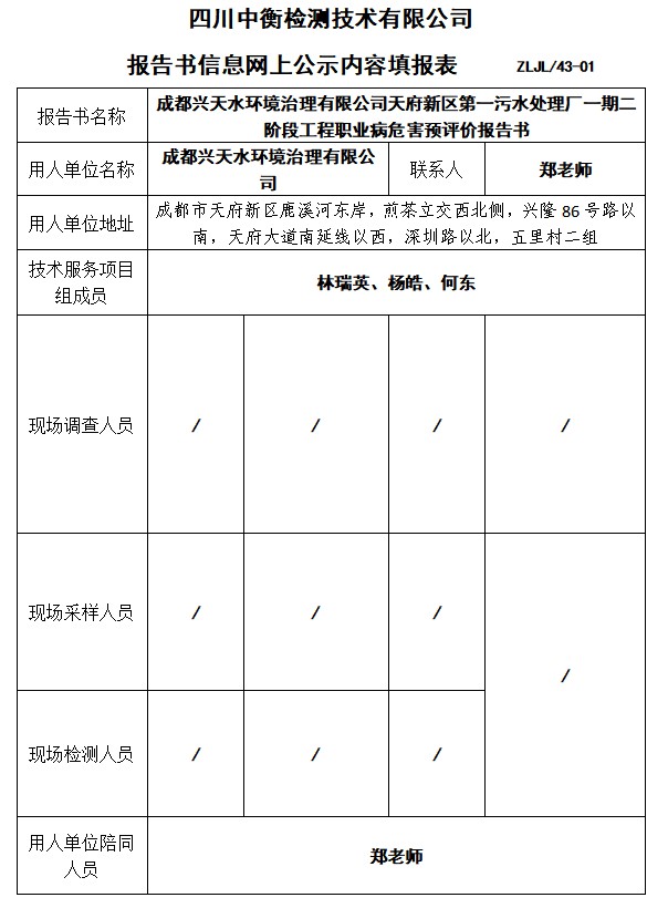 成都興天水環(huán)境治理有限公司天府新區(qū)第一污水處理廠一期二階段工程預(yù)評(píng)價(jià)