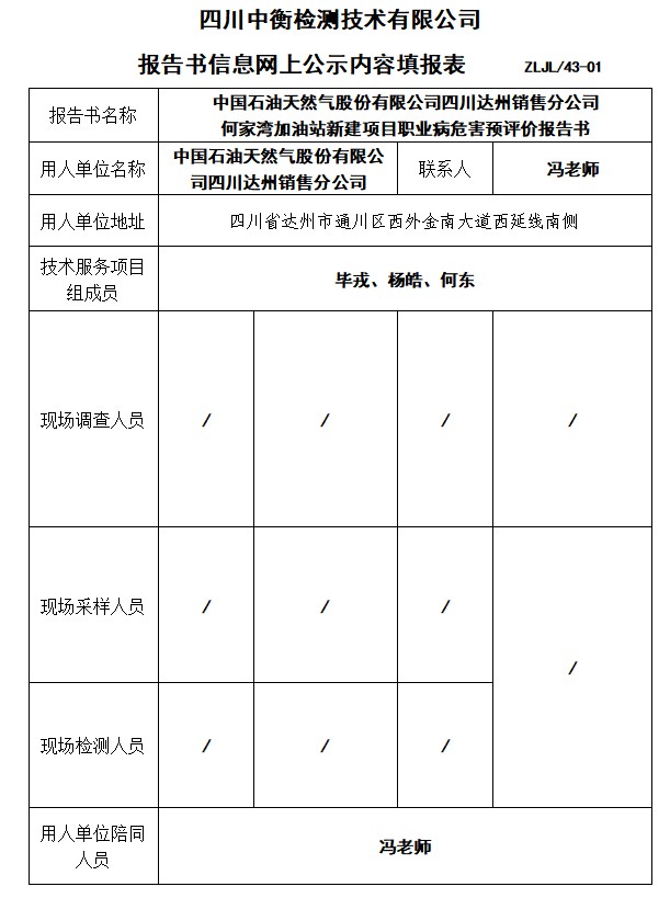 中國石油天然氣股份有限公司四川達(dá)州銷售分公司 何家灣加油站新建項(xiàng)目預(yù)評(píng)價(jià)