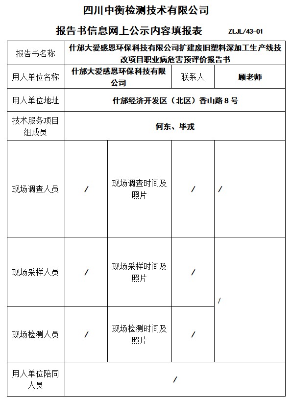 什邡大愛感恩環(huán)保科技有限公司擴(kuò)建廢舊塑料深加工生產(chǎn)線技改項(xiàng)目預(yù)評(píng)價(jià)