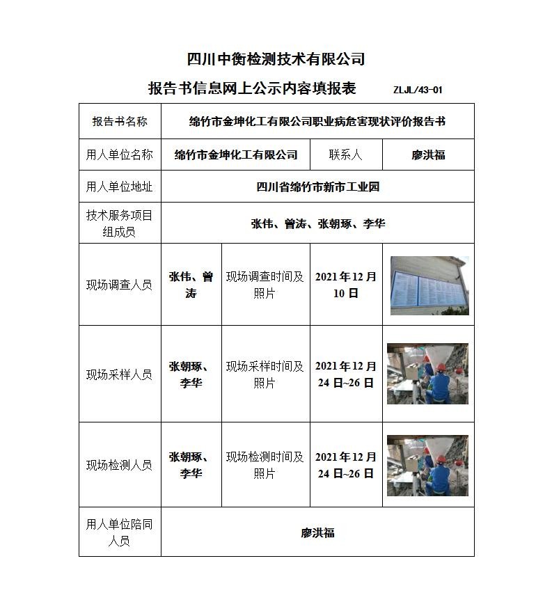 綿竹市金坤化工有限公司職業(yè)病危害現(xiàn)狀評價
