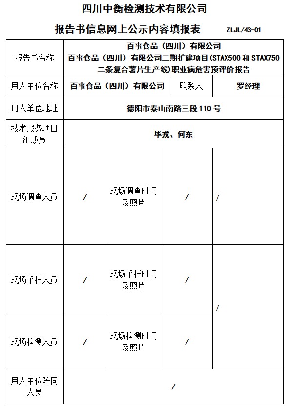 百事食品(四川)有限公司 百事食品(四川)有限公司二期擴(kuò)建項(xiàng)目(STAX500和STAX750二條復(fù)合薯片生產(chǎn)線)預(yù)評(píng)價(jià)