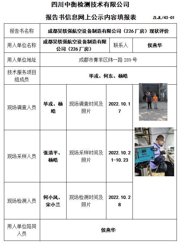 成都昊軼強航空設(shè)備制造有限公司(226廠房)現(xiàn)狀評價
