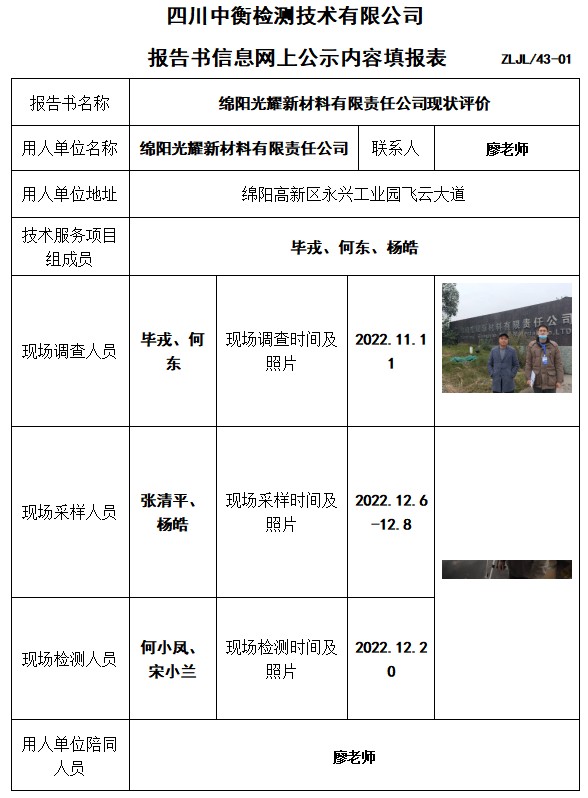 綿陽光耀新材料有限責(zé)任公司現(xiàn)狀評價