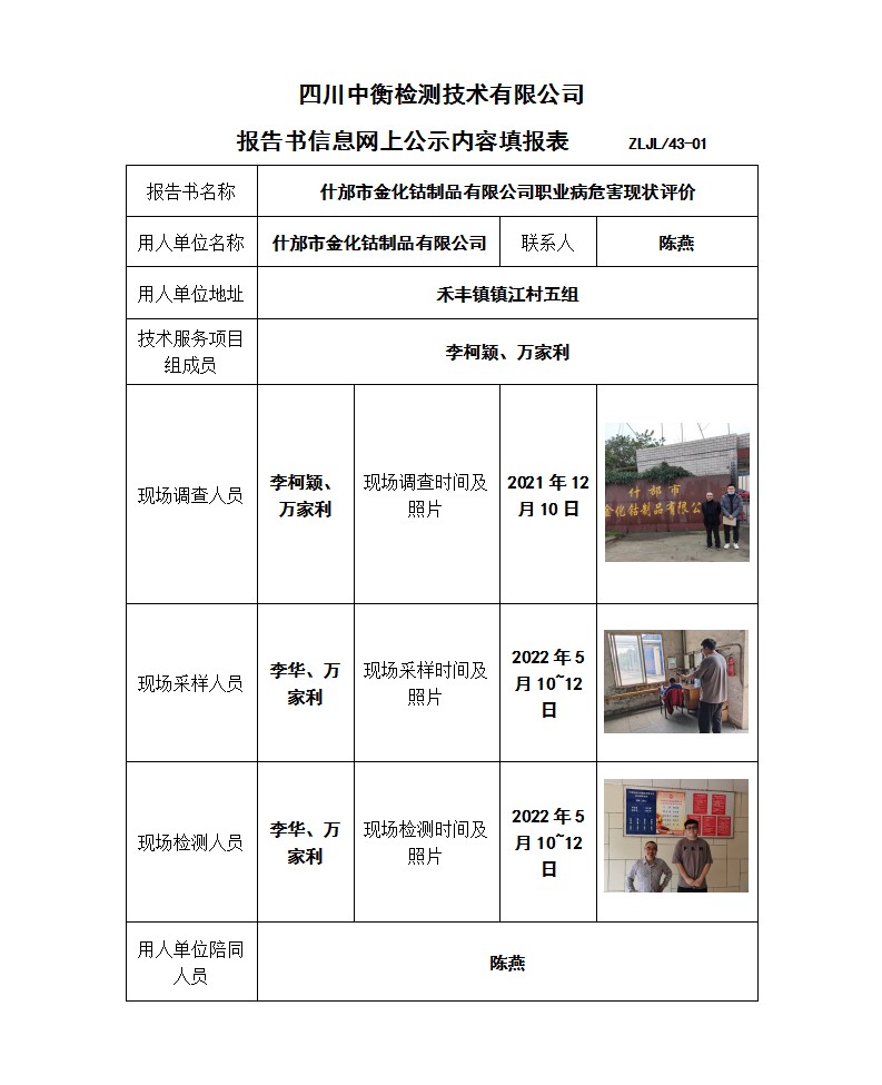 什邡市金化鈷制品有限公司 職業(yè)病危害現(xiàn)狀評價報告書