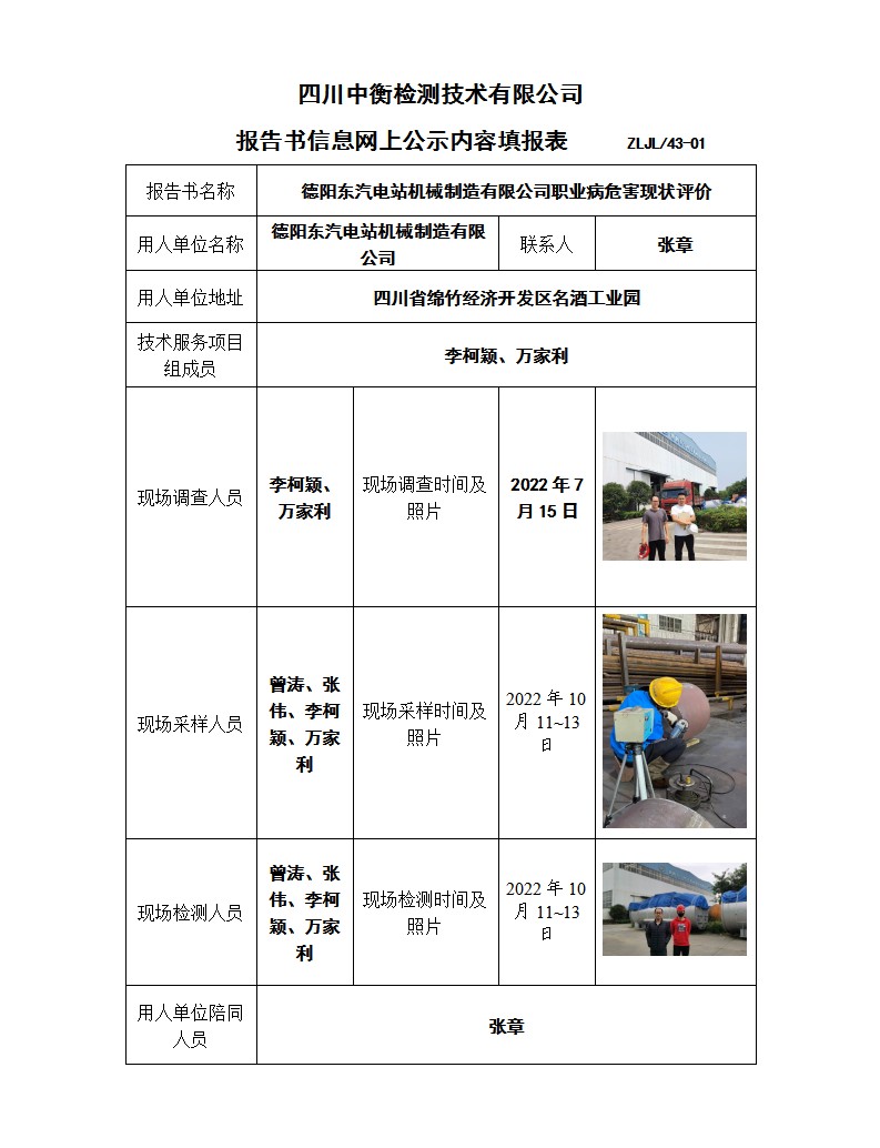 德陽東汽電站機械制造有限公司 職業(yè)病危害現(xiàn)狀評價報告書