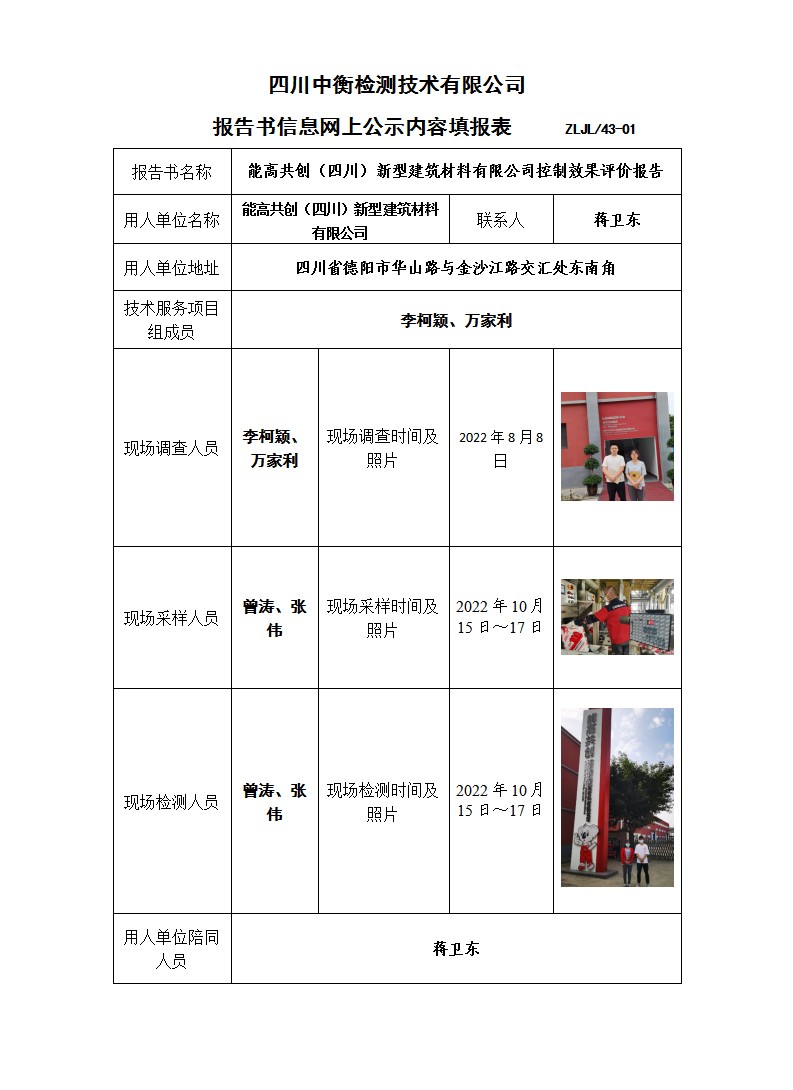能高共創(chuàng)(四川)新型建筑材料有限公司 能高共創(chuàng)特種干粉砂漿遷建項目 職業(yè)病危害控制效果評價報告書