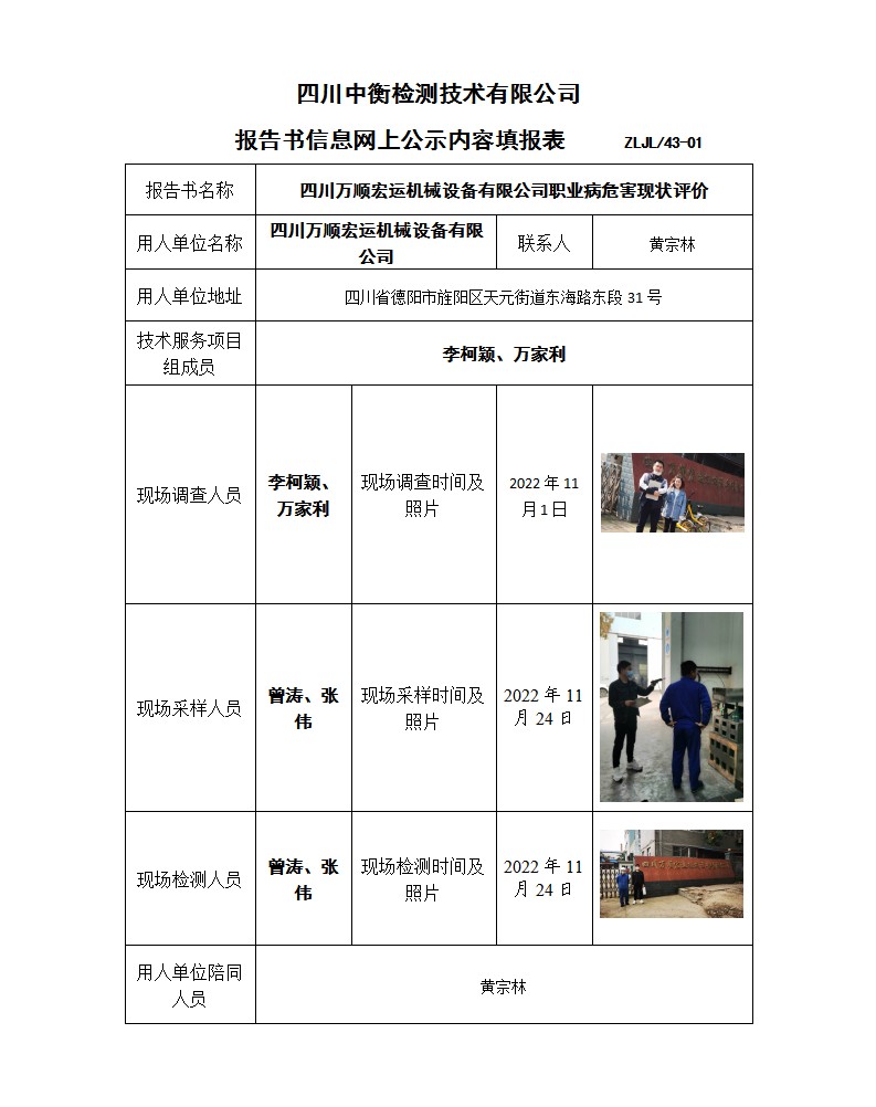 四川萬(wàn)順宏運(yùn)機(jī)械設(shè)備有限公司 職業(yè)病危害現(xiàn)狀評(píng)價(jià)報(bào)告書(shū)