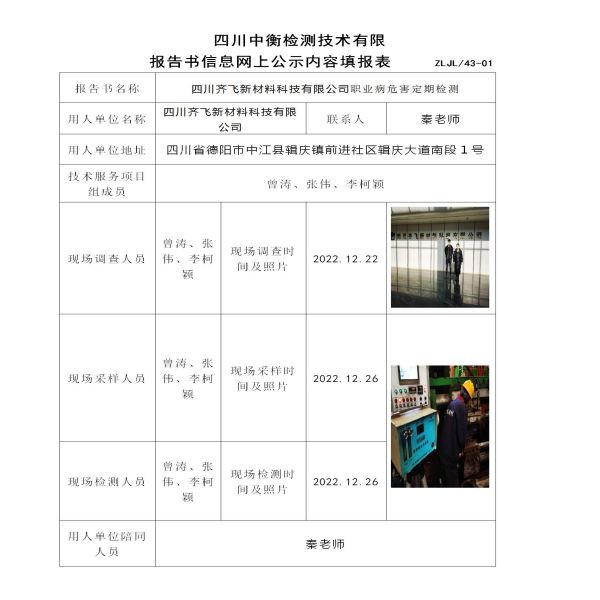 四川齊飛新材料科技有限公司定期檢測(cè)