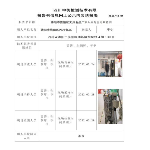 德陽市旌陽區(qū)天月食品廠定期檢測