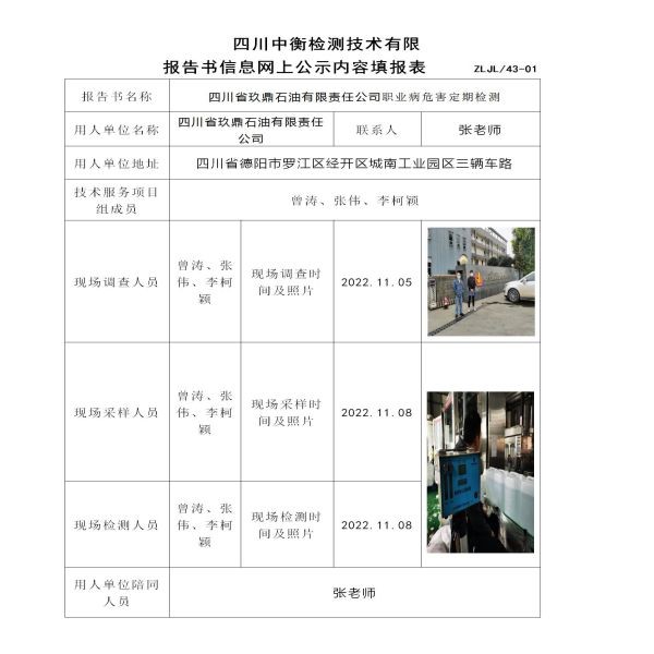 四川省玖鼎石油有限責(zé)任公司定期檢測(cè)