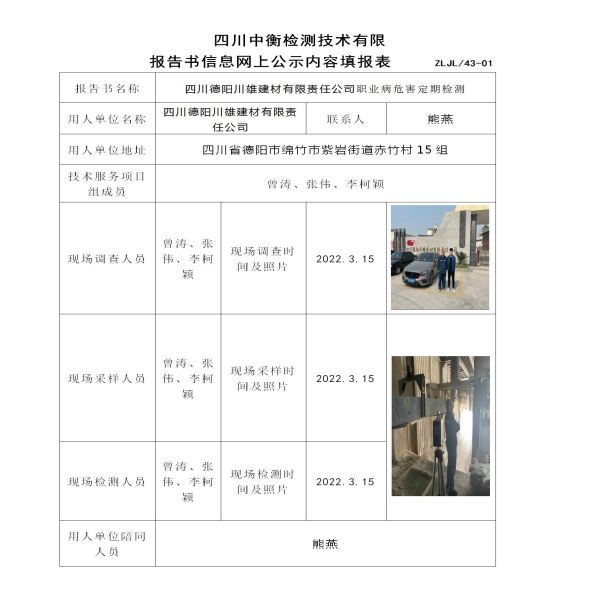 四川德陽(yáng)川雄建材有限責(zé)任公司職業(yè)病危害定期檢測(cè)